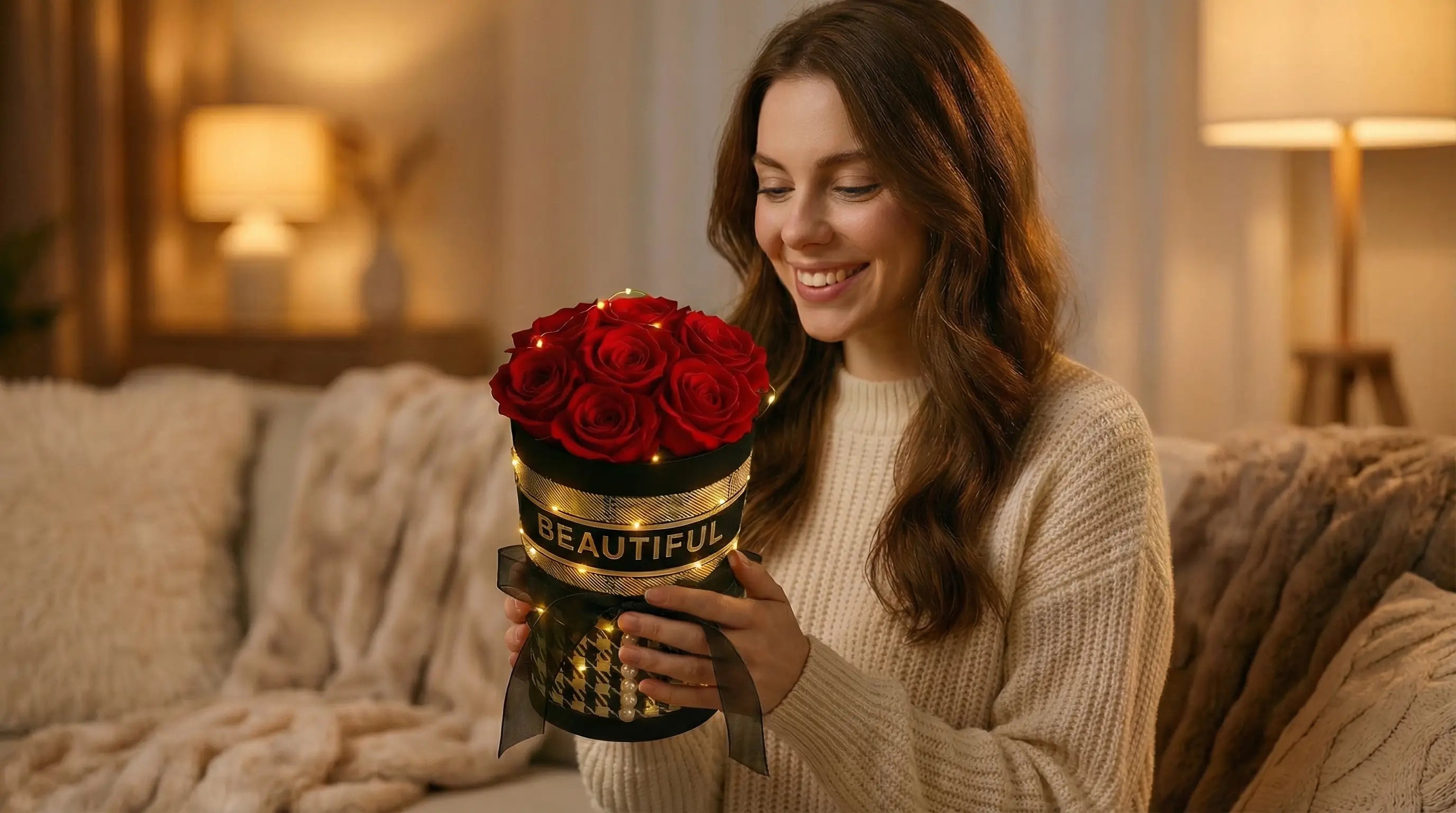 Rozen Boeket met LED Verlichting – In Geschenkverpakking – Eeuwige Rozen – 25 cm