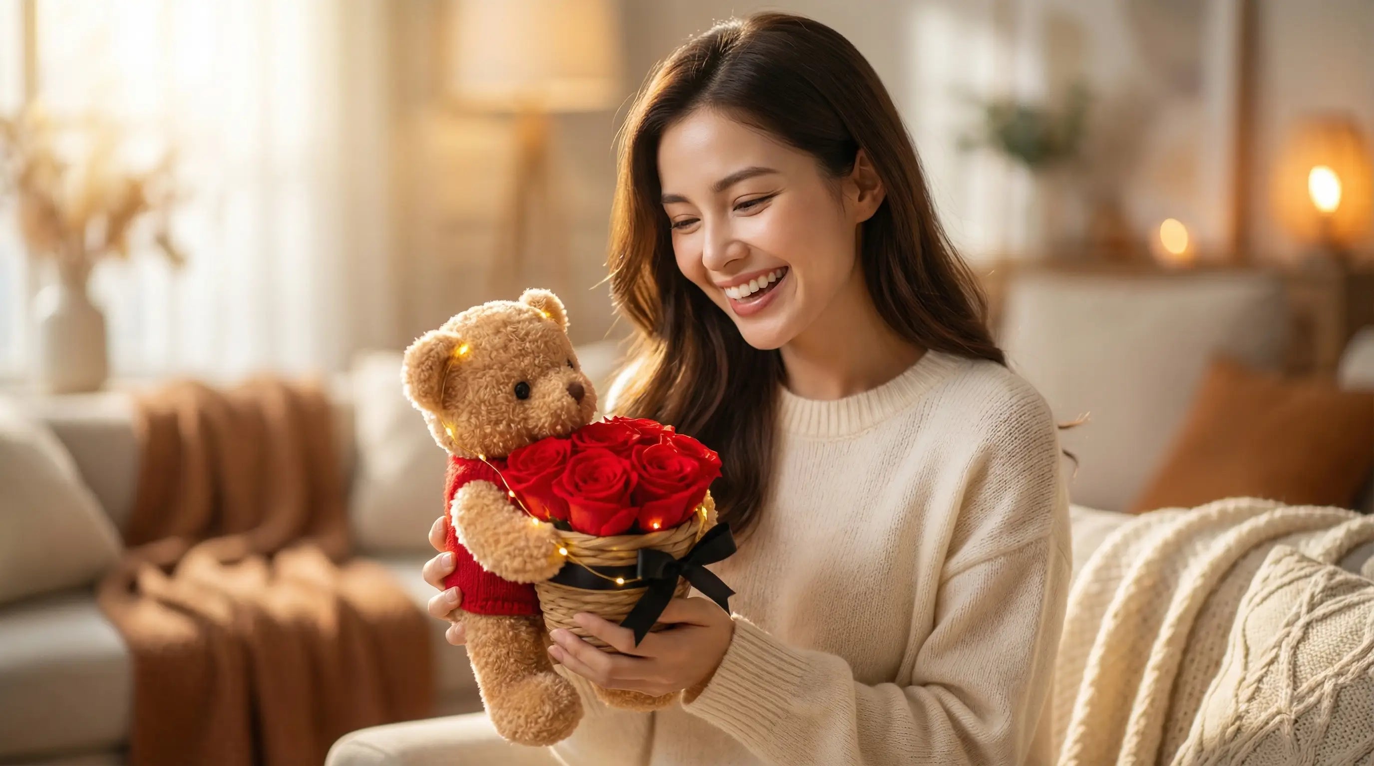 Teddybeer met Eeuwige Rozen Cadeaumand – 25 cm – Romantisch Geschenk